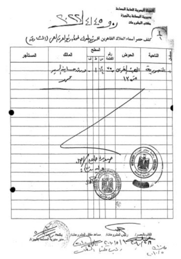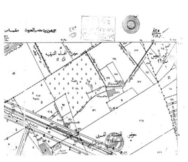 ورد كتاب السيد المهندس مدير مديرية المساحة بالجيزة رقم (۳۳۰۲) بتاريخ ۲۰۲۲/۹/۱۲ يطالب الجهاز التنفيذى لمياه الشرب والصرف الصحى بقرار منفعة عامة جديد للمشروع والواقع بحوض الهيشة الغربي نمرة (۳۱) بناحية المنصورية بمسطح قيراط واحد ٦,٧٥ سهم) تقريبا والمحددة على الخريطة المساحية رقم (٦١٨/٨٢٥) وقد تم الحصول على المستندات الآتية :